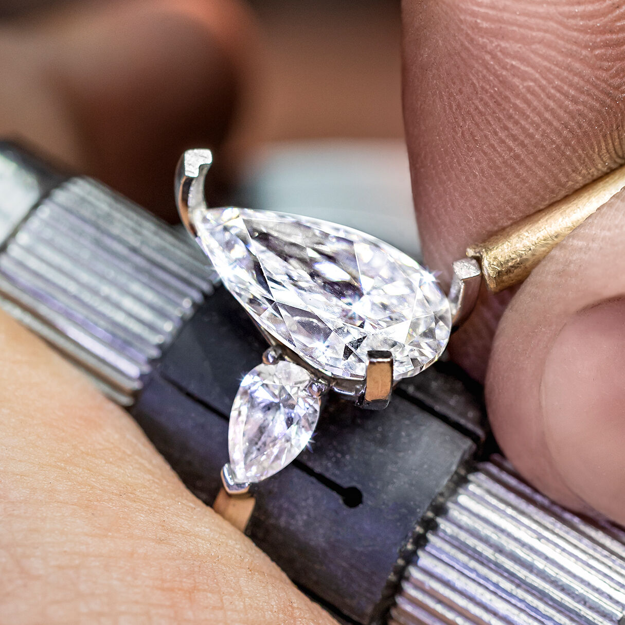 Utilizing meticulous techniques, our master stone setters expertly integrate each stone into the piece. Whether in the prongs, the bezel, or the pave setting, their precise placements maximize fire, brilliance, and lasting security.