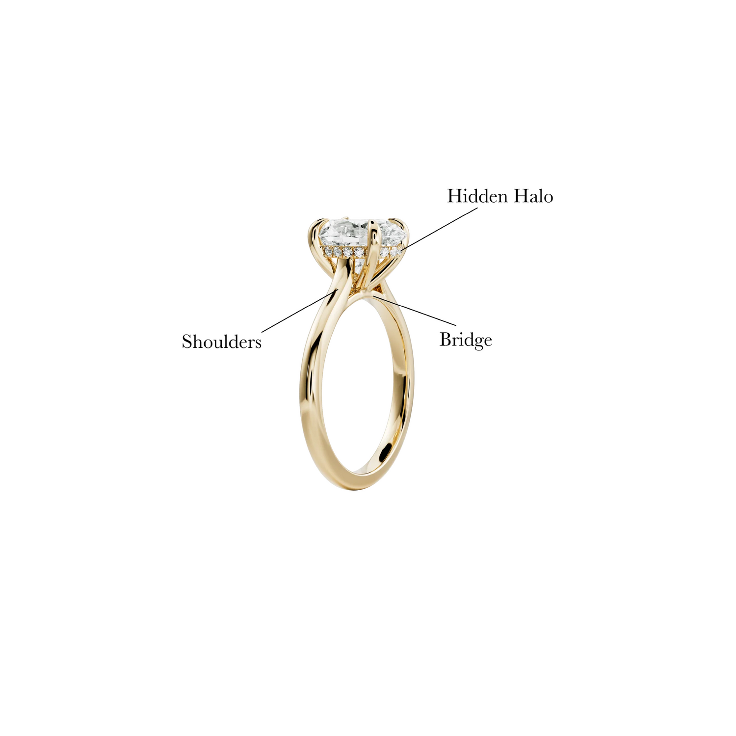 A design feature where the gallery rail that forms part of the basket securing a stone is lined with small stones. Not visible from directly above the ring, a hidden halo adds a touch of sparkle from a side view.