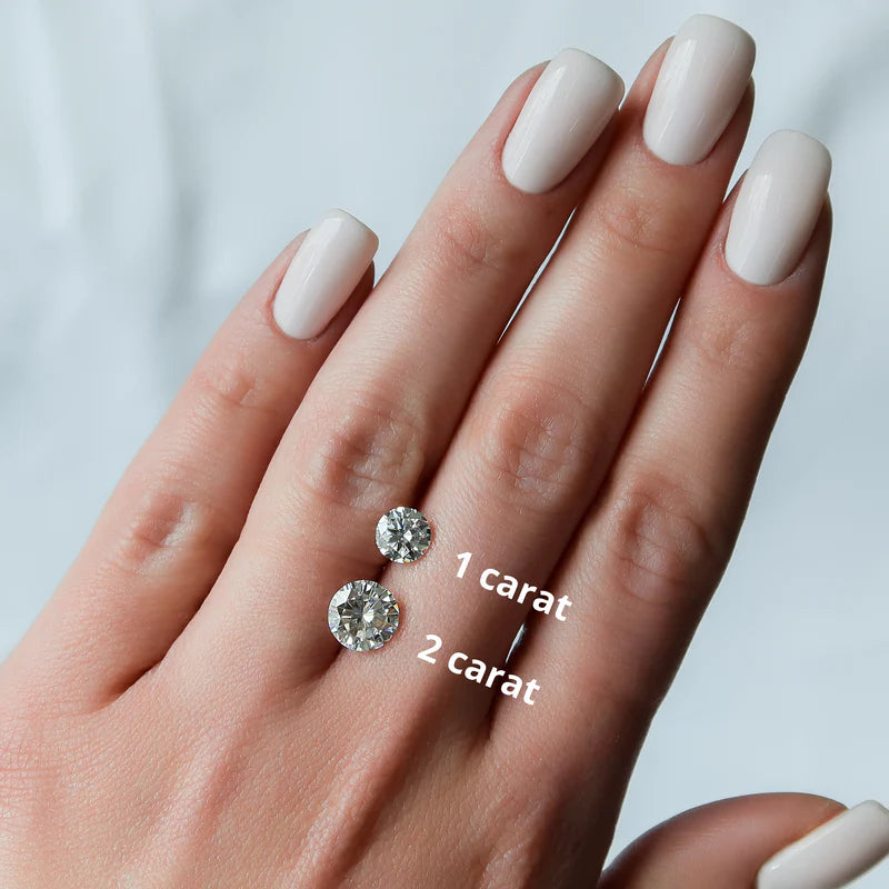 Carat weight can appear differently across different diamond shapes and while carat weight can influence the price of a diamond, no two diamonds of the same weight will be worth the same and may not even look the same size. A diamond may have a higher carat weight without appearing larger and two diamonds of the same carat weight can vary in size if one is cut deeper than the other. In other words, it is important to note that carat weight does not necessarily determine size but below you can find a rough guideline of the size you can expect.